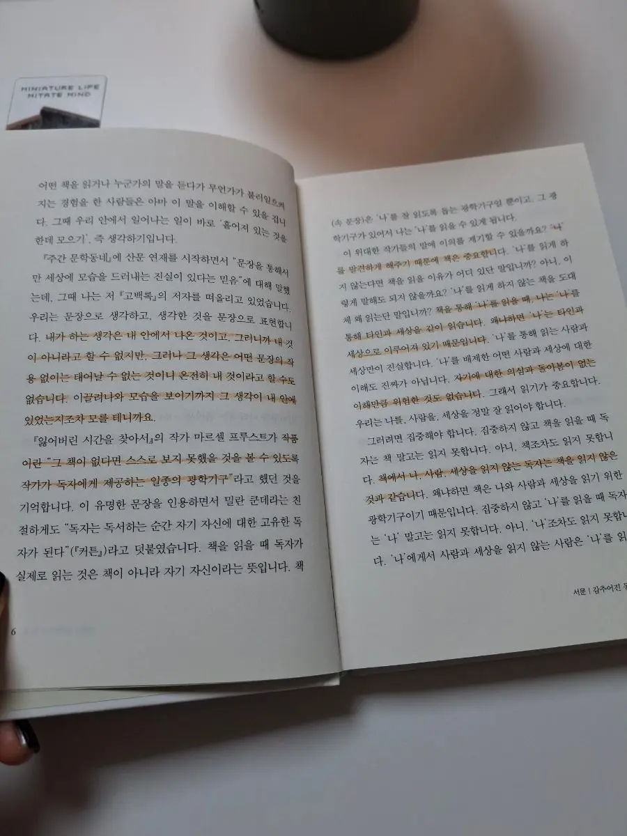 내가 하는 생각은 내 안에서 나온 것이고, 그러니까 내 것이 아니라고 할 수 없지만, 그러나 그 생각은 어떤 문장의 작용 없이는 태어날 수는 없는 것이니 온전히 내 것이라고 할 수도 없습니다. 이끌려 나와 모습을 보이기까지 그 생각이 내 안에 있었는지조차 모를 테니까요.[고요한 읽기- 이승우]
