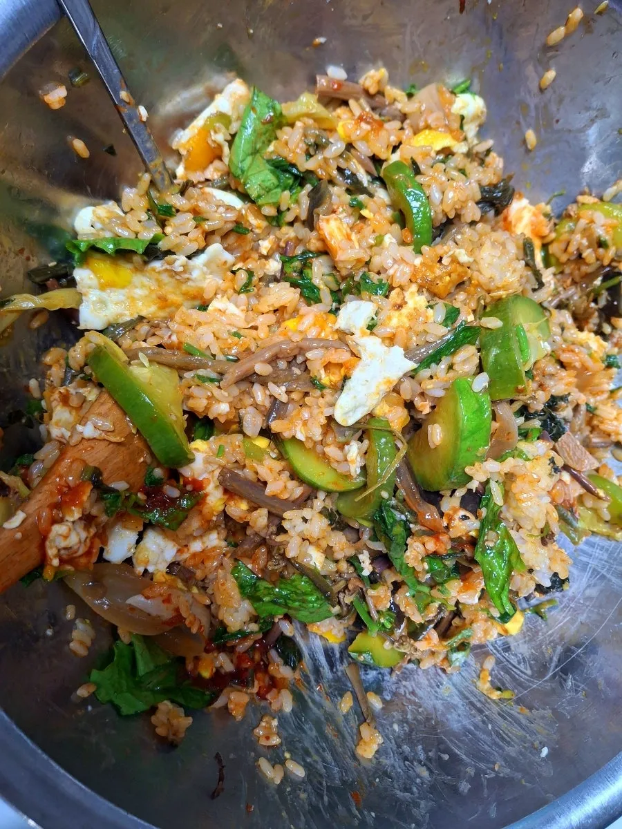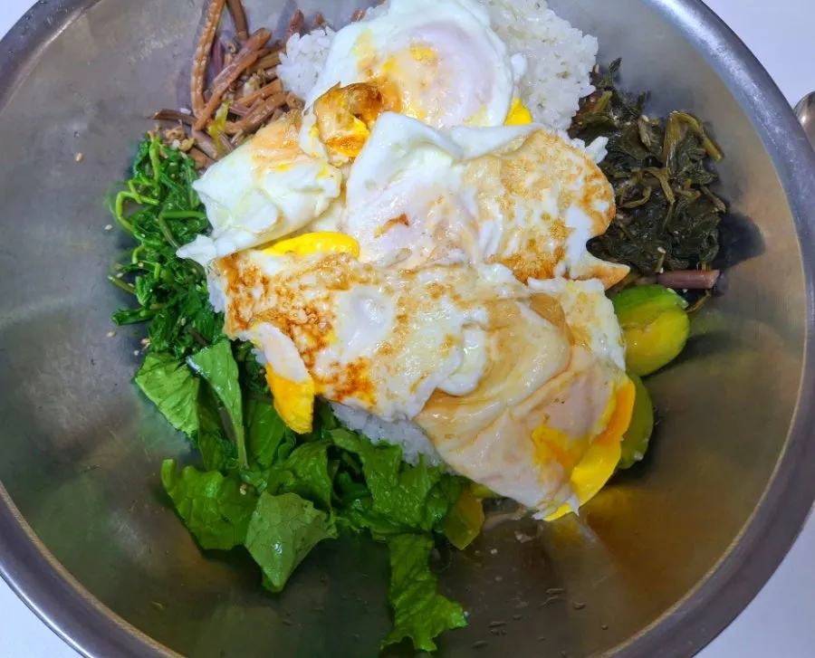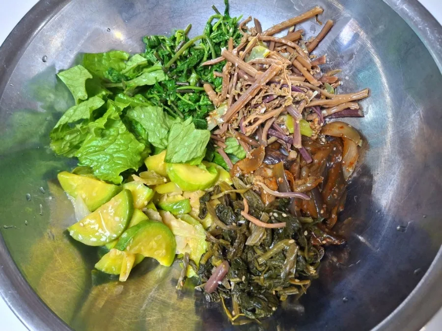 가지볶음호박볶음고사리볶음엄나무순상추곤드레나물달걀참기름고추장모든 준비는 끝났다!
