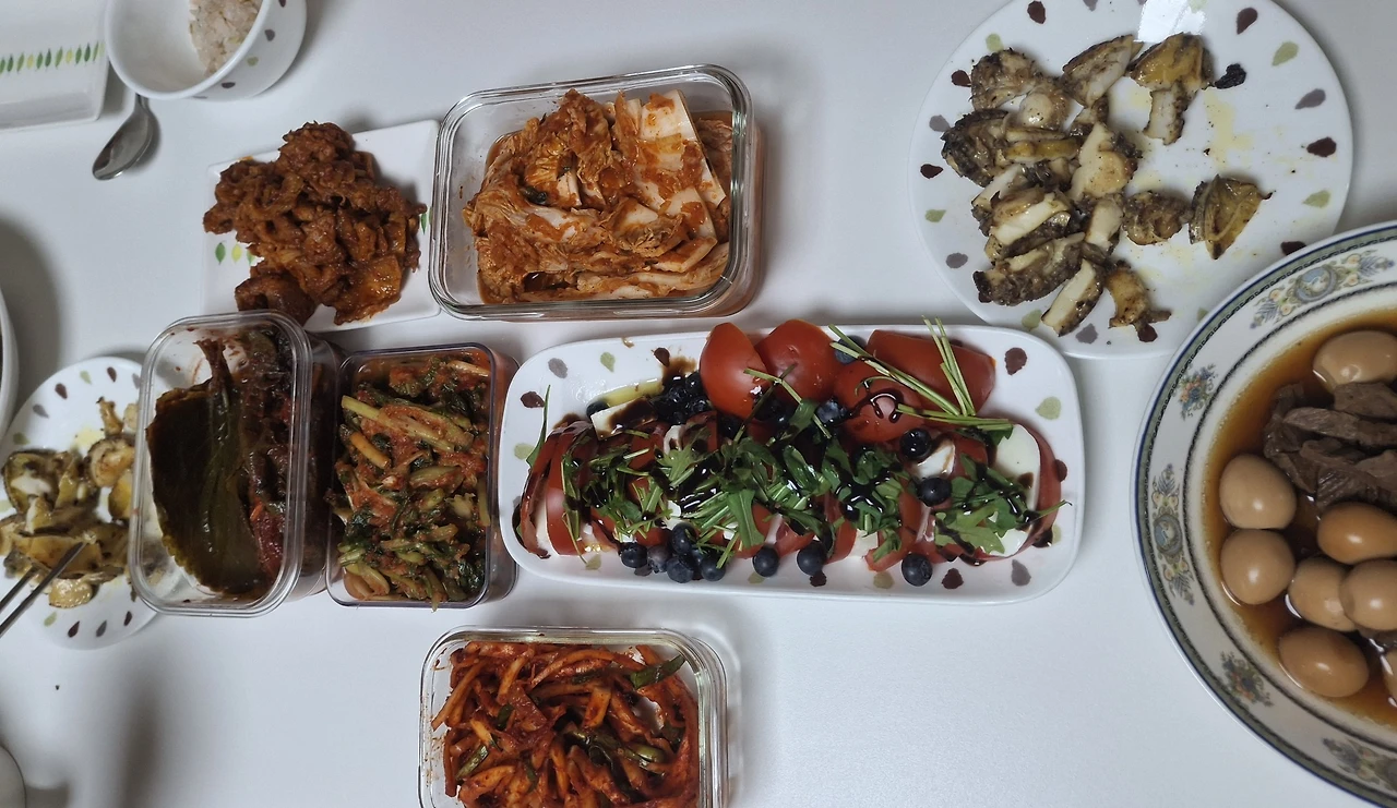 전복버터구이도 만들고 장조림도 하고 제육도 좀 내어주고 정육점에서 서비스로 받은 고기로 된장찌개도 끓였다.