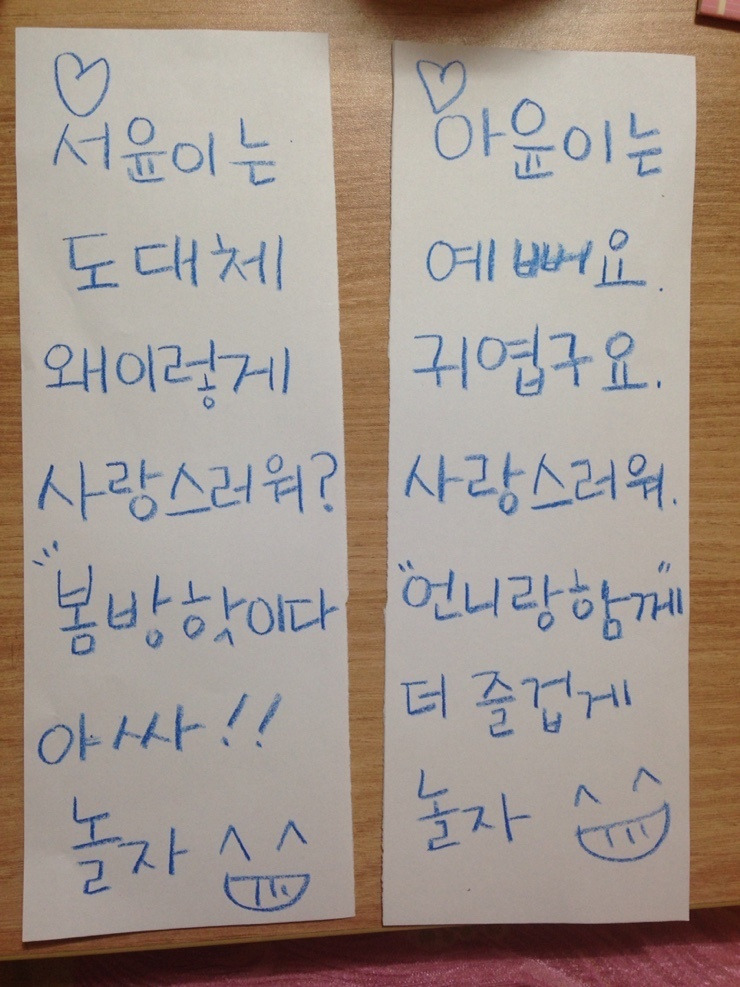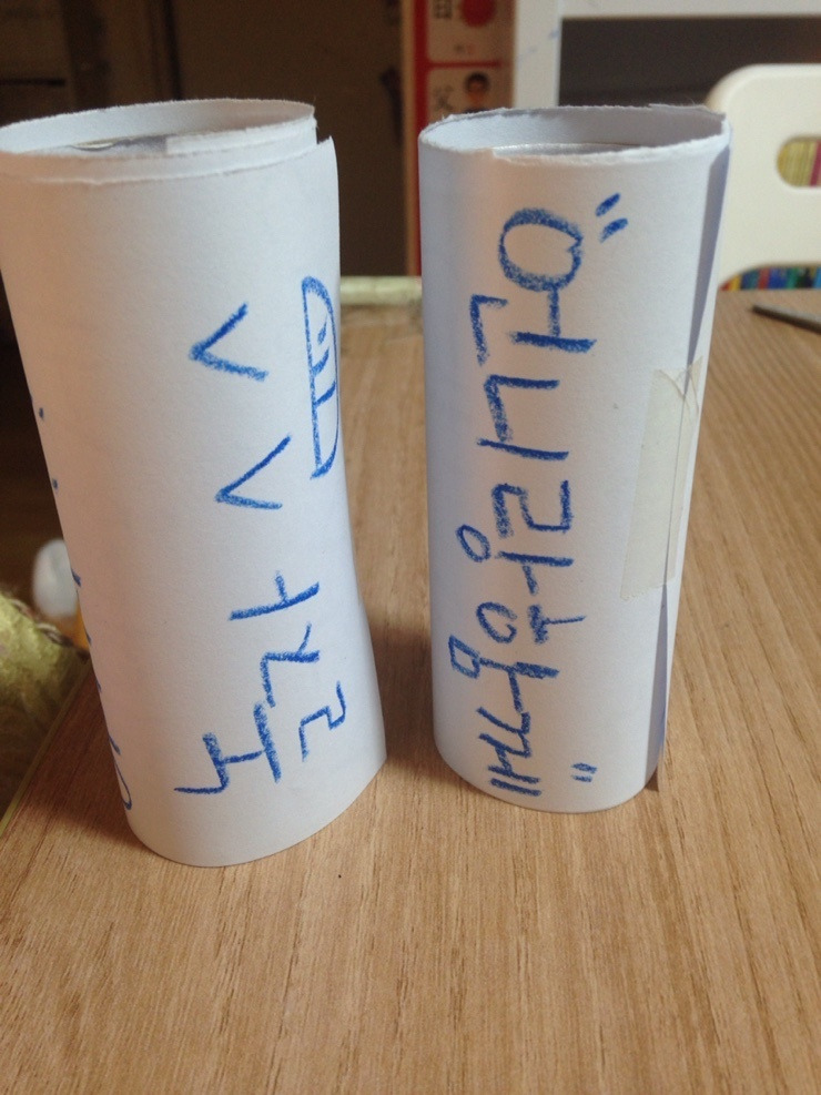 #휴지심에 이렇게 편지를 써서 내주는 것도 좋고.