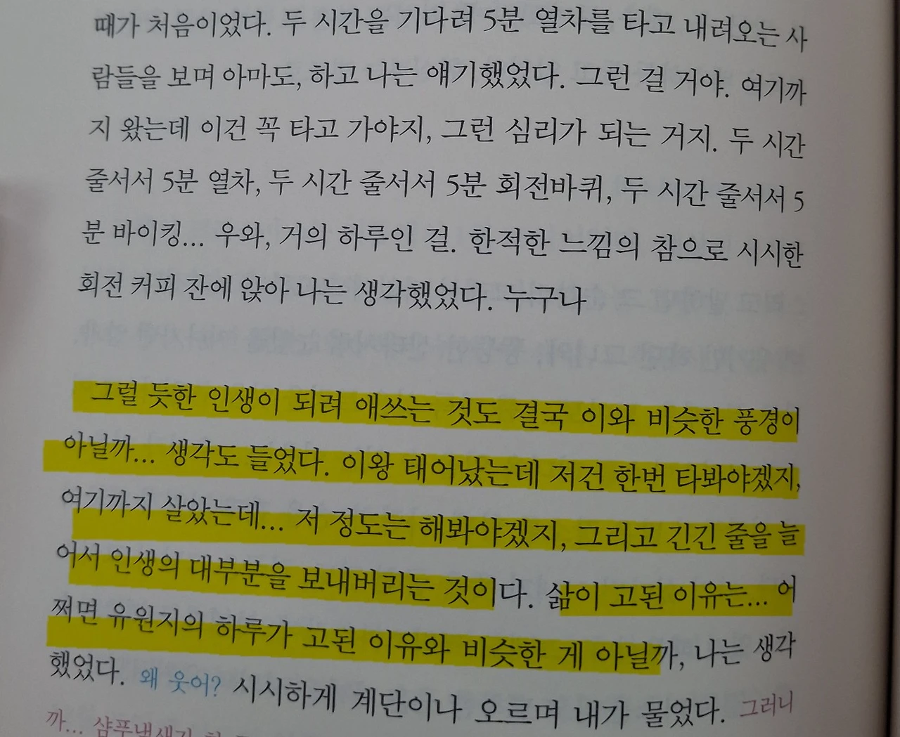 놀이동산 긴 줄을 두 시간 기다리고 5분 타는 모습을 문장으로 읽으면서 "아... 맞네.." 생각했다.