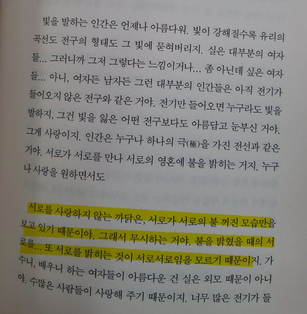 많은 사람의 사랑을 받아 그 전구 같은 환한 빛이 모이고 모여 한 사람을 환하게 밝힌다는 것이다.