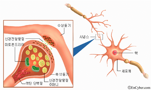 시냅스는 두 세포(뉴런)들 사이의 접점이라고 보면 돼.