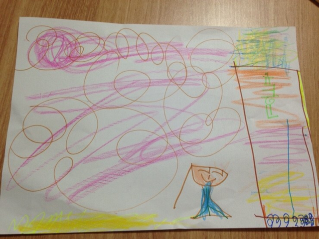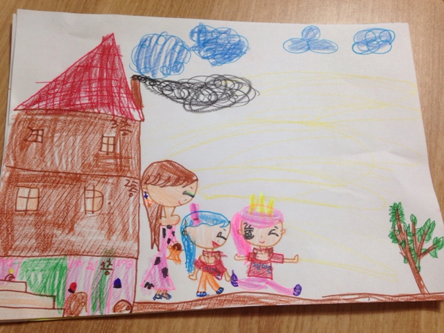 우리집이 세상에서 제일 높다며 그려 들고오는 아윤이가 있어.