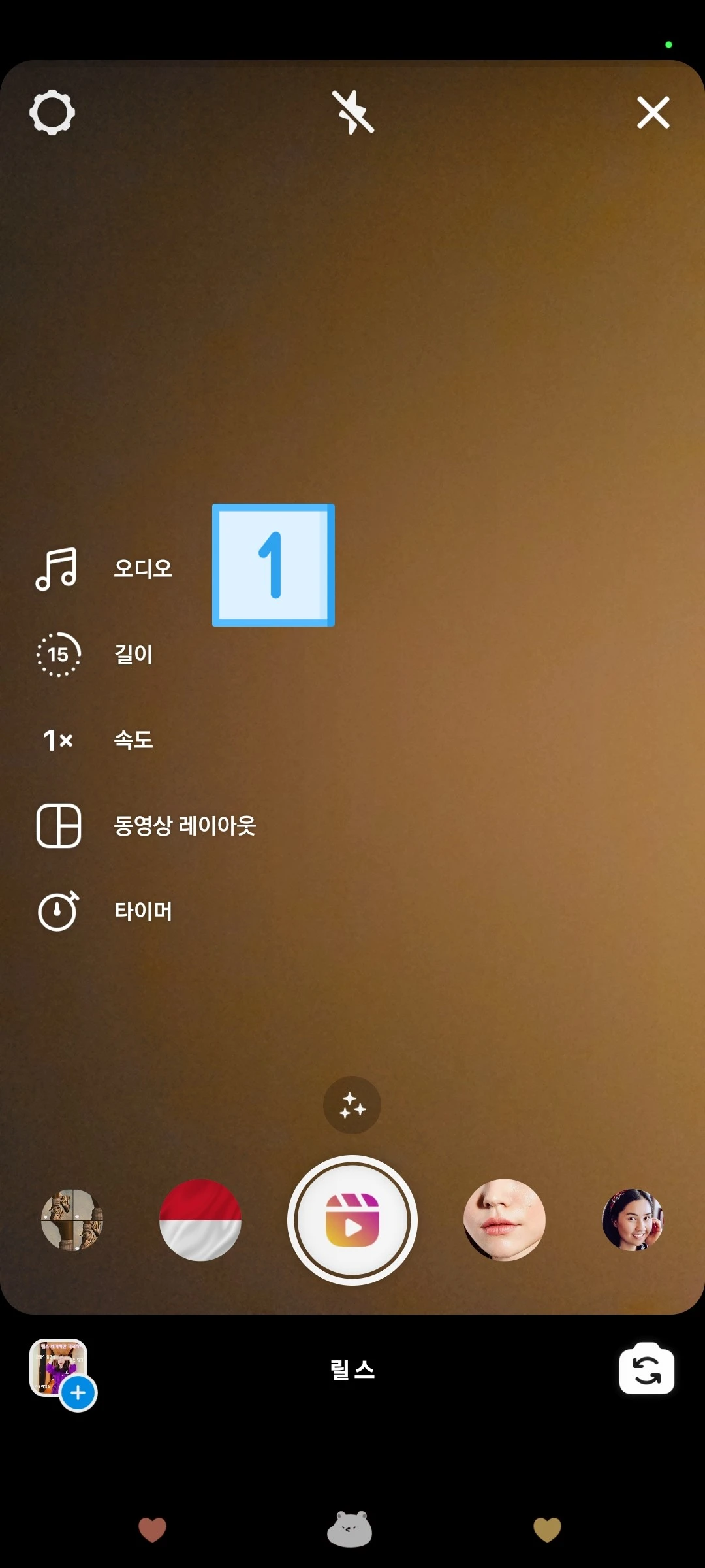 릴스의 가장 큰 특징중 하나 음악을 사용하는 기능입니다.