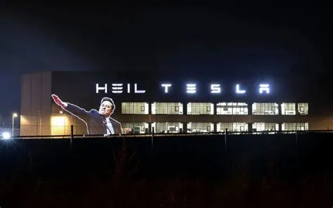 활동가들이 베를린 기가팩토리에 연출한 비판 퍼포먼스.
