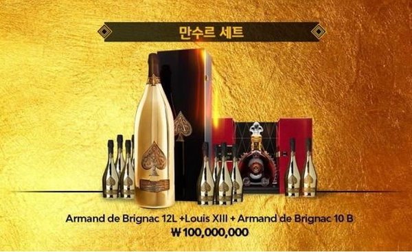 아무렇지도 않게 몇 억을 꺼내 툭툭 던지는 사람들이 의외로 적지 않다. 모 가수가 운영하는 클럽에서는 1억 원짜리 '만수르 세트'를 판다. '아르망 드 브리냑' 12L와 '루이 XIII', 아르망 드 브리냑 10병을 1억 원에 즐길 수 있는데, 만수르 세트가 팔리면 인터넷 매체가 심심찮게 소개할 정도다.