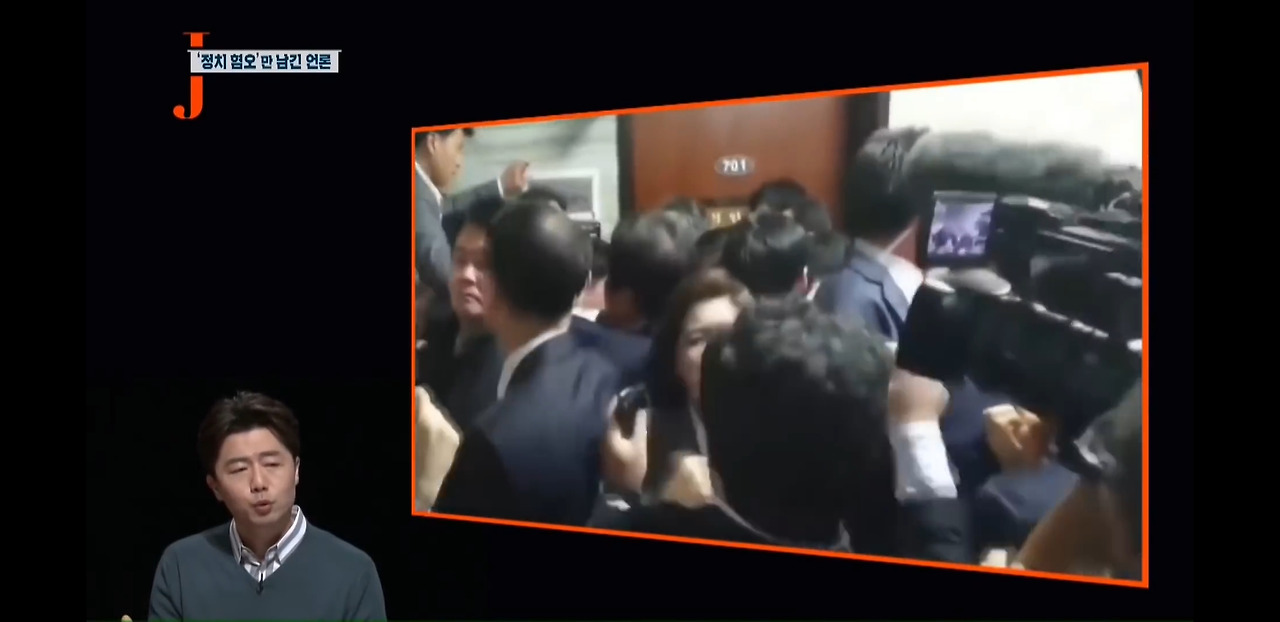 하지만 국회 싸움 장면 중계는 전혀 신기한 게 아니다. 국회선진화법 이전에 이런 포맷의 중계는 늘 있었다. 당장 떠오르는 것만 하더라도 한미FTA 국회 논의 당시 김선동 전 의원이 본회의장에 최루탄 터뜨리는 장면이 눈에 선하다. 예산 정국 때 본회의장 몸싸움은 연례 행사였다. 강기갑 의원의 공중부양이나 소위 오함마, 빠루가 춤을 추던 장면이 현장 중계됐던 건 과거 수 차례 행해진 보도 포맷이다. 시청자 상당 수에겐 꽤 익숙하면서도 낡은 기억일 것이다. 이런 걸 가지고 본인이 신기하셨다 하여 지상파 전파에 남들도 신기했을 거라는 평을 실어 날리는 건 '예전엔 뉴스 안 보셨나' 하는 생각이 들게 한다.