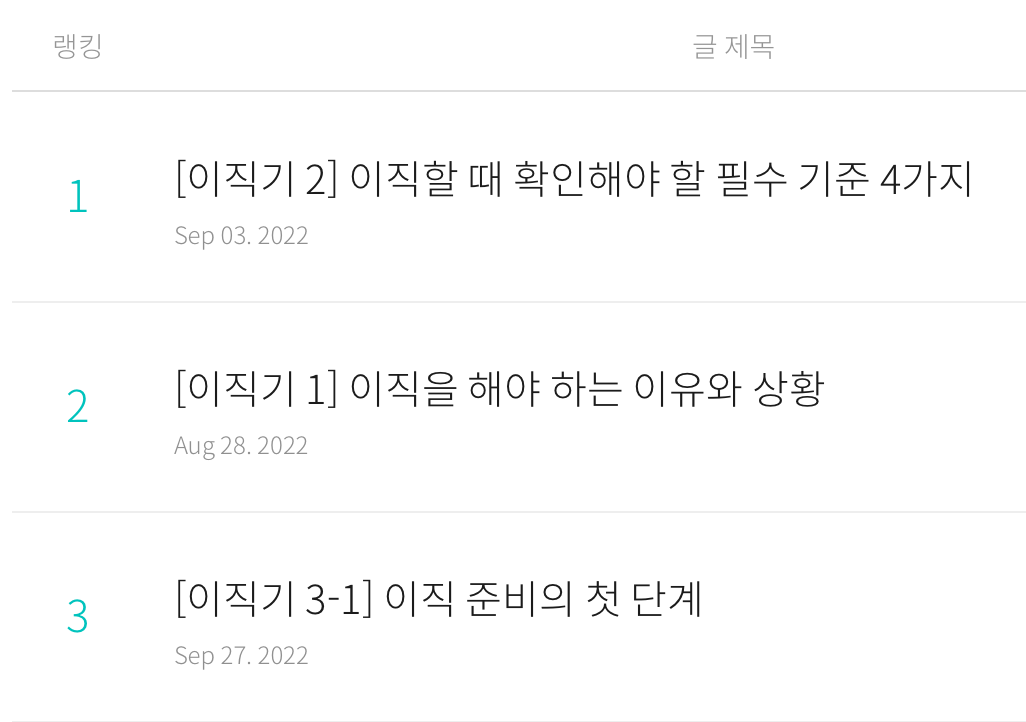 1. 새 글이 없어도 이직 관련 검색어로 들어오는 사람들이 많으며,