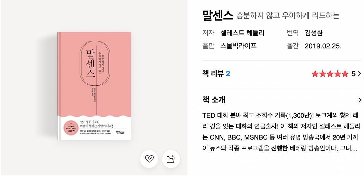 '말센스'는 새로운 정보를 담고 있는 어려운 책은 아니다. 대화에 어려움을 겪고 있는 사람이 한 번쯤 가볍게 읽어보기 좋을 것 같다. 다만 대화를 잘하고 있는 사람은 이미 다 아는 내용일 것이고, 대화를 못하는 사람은 스스로 못한다는 걸 인지하지 못해 책을 찾아보지 않을 가능성이 높을 것 같다.