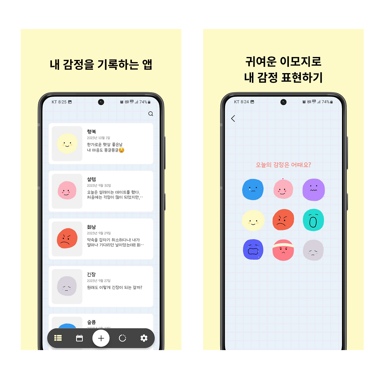 이모티콘을 기반으로 기록된 감정은