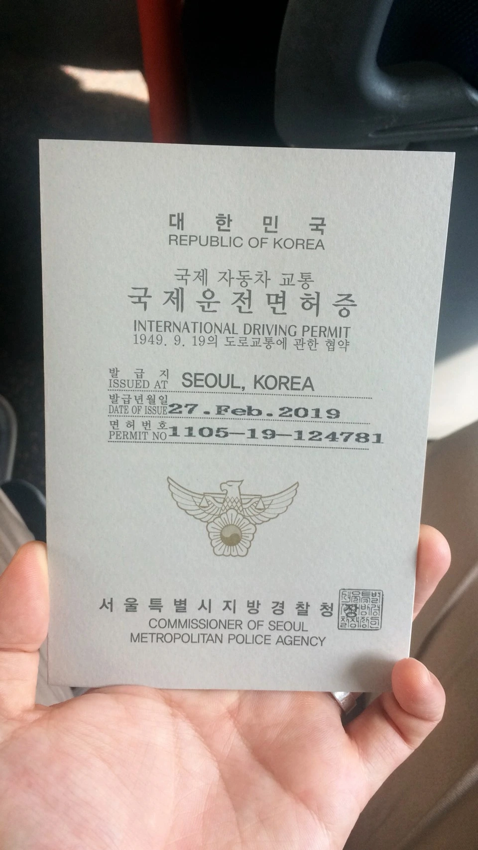 국제면허증은 아무 경찰서에 들어가서 국제면허증 발급받고 싶다고 하면, 간단한 신청서류를 작성하라고 한다. 서류 제출하고 10분이면 국제면허증이 나온다. 국제면허증 발급받을 때는 필히 본인의 운전면허증과 여권사진 1장을 지참해야한다. 혹시 모르니 여권도 챙겨가는 것이 좋다.
