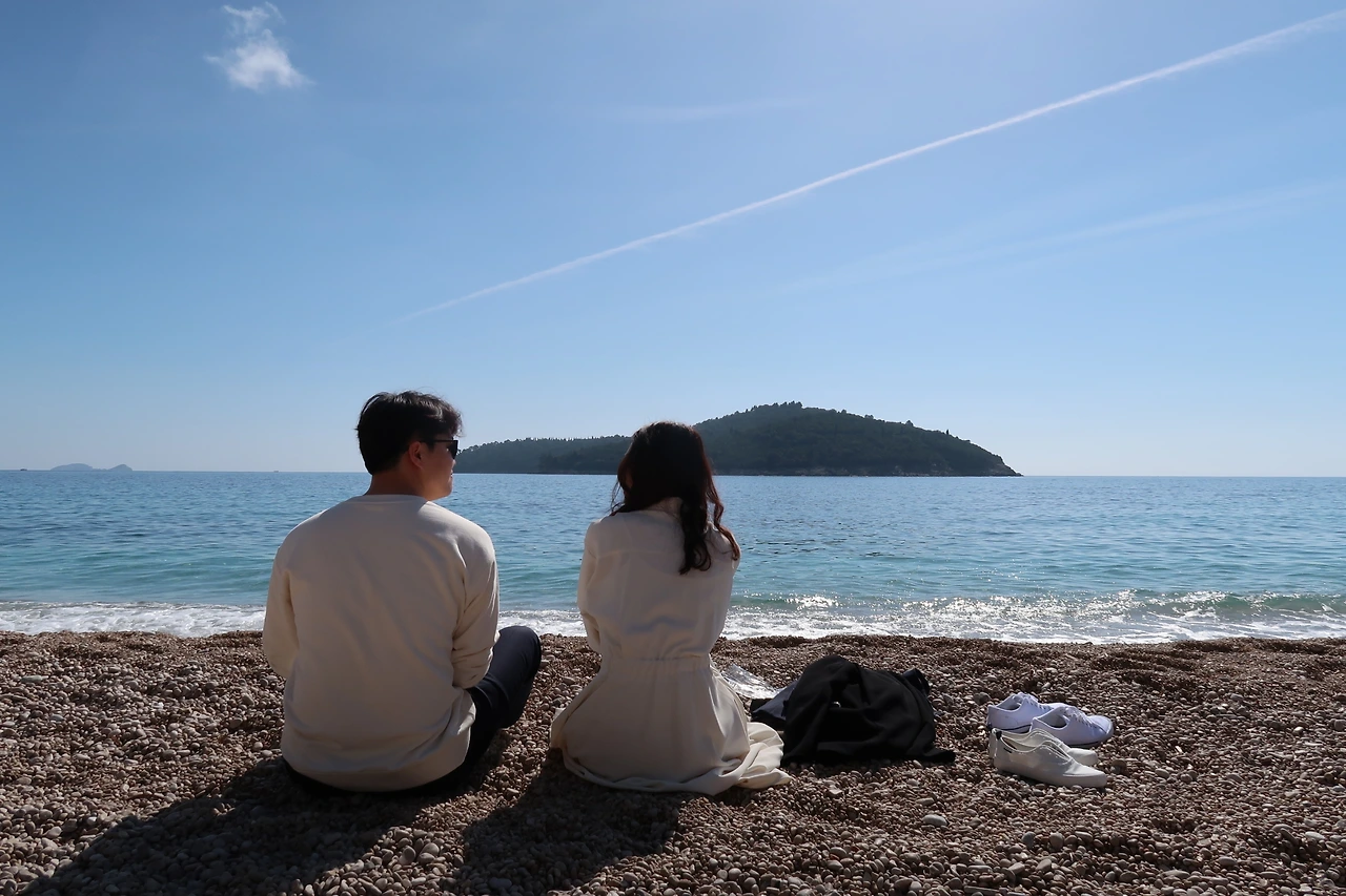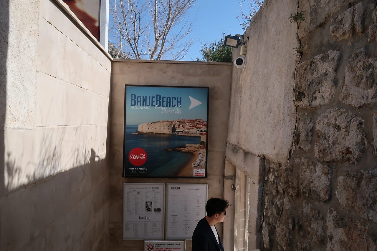 첫쨋날과 둘쨋날에 올드타운 구석구석과 성벽을 둘러보고 나니 올드타운을 벗어나고 싶어졌다. 이제는 새로운 곳으로 가보자는 마음으로 발걸음 닿는 대로 걸어보기로 했다. 그러다가 우연히 마주친 곳이 반예 해변이었다. 두브로브니크는 아름다운 해변으로도 유명하나, 우리는 아직 겨울의 추위가 가시지 않은 3월초 여행이었기 때문에, 여행 코스를 짤때, 해변을 고려하지 않았다. 그러나, 두브로브니크까지 왔는데 해변도 안보고 그냥 갈 순 없다는 생각에, 주저하지 않고 곧장 반예해변 입구로 들어갔다.