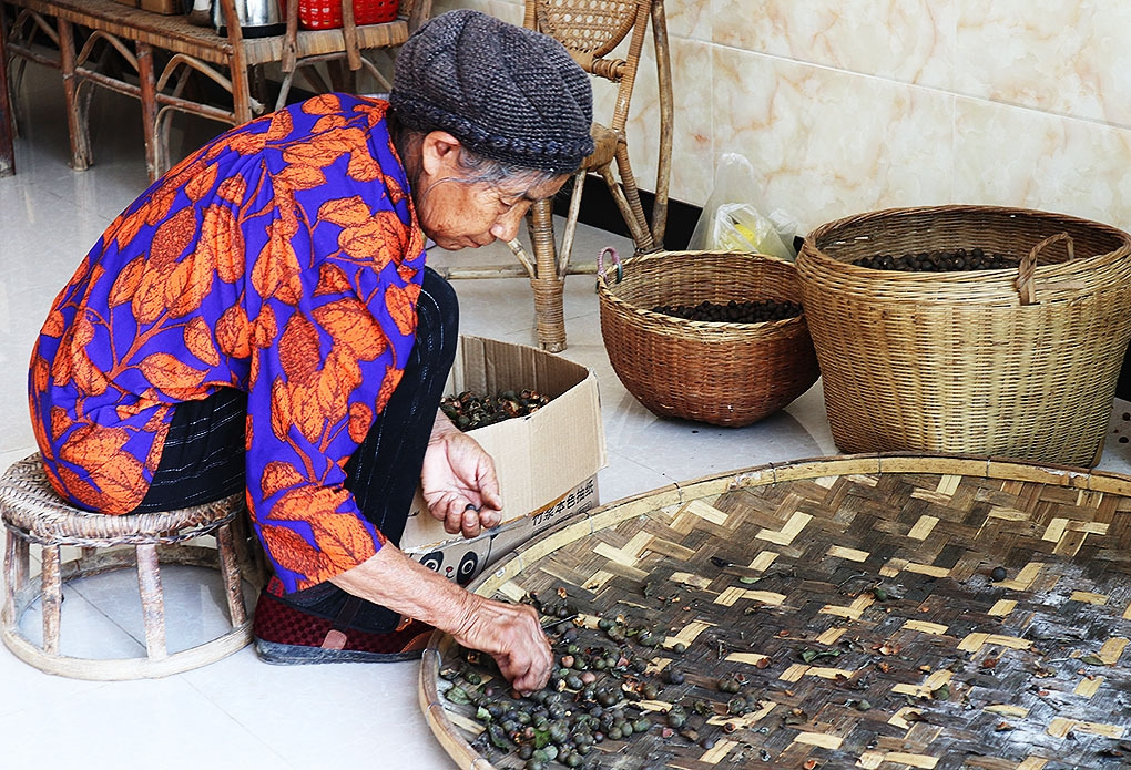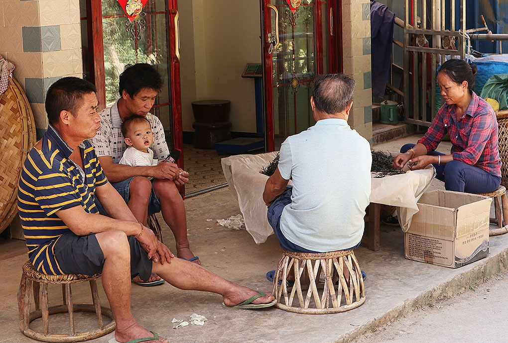 식사를 마치고 고차수 차밭을 둘러보러 집을 나섰다. 집 앞에 삼삼오오 모여 황편을 골라내고 있는데 이 동네 남자들은 하나같이 앉아서 구경만 하고 있다. 힘쓰는 일은 남자가 하고 차분히 앉아서 하는 섬세한 일은 여자가 하는 일인지 모르겠으나, 재미난 광경이다. 뒤에 노반장 가기 전 반분 마을의 초제소 작업장에 들렀을 때는 남자도 황편을 골라내고 있었다. 아마도 그곳은 회사여서 그랬겠지.