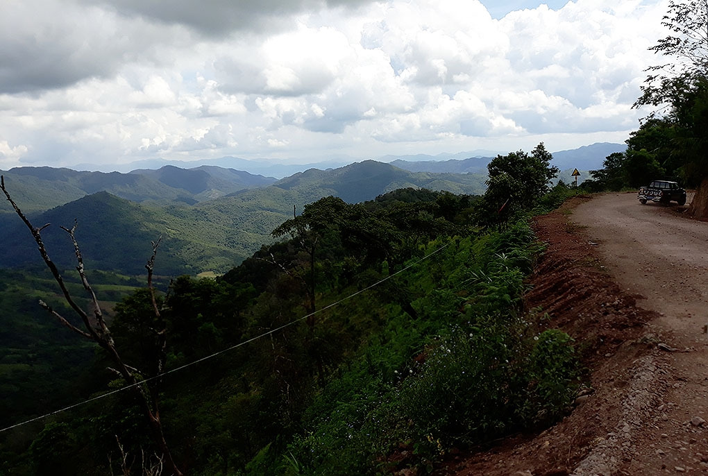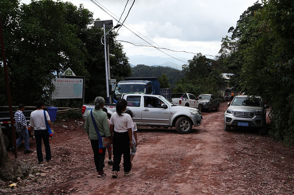 다시 오는 봄날엔 지리산에 이런 낙원이 펼쳐지기를 염원하며 먼 하늘 끝 높은 산과 산들이 만들어 내는 능선과 구름이 그려 내는 그림을 넋 놓고 바라보며 험한 산길을 한동안 달리는데 길 양옆으로 차와 오토바이들이 주차되어 있고 갑자기 길이 막혔다. 이런 깊은 산속 외길에 차들이 서로 엉켜 있고 많은 사람들이 분주하게 움직이는 게 무슨 일이 있나 보다. 윈춘이 한참을 기다려 앞에 있던 차들이 정리되어 길이 열리자 조금 가다 길 옆에 차를 주차한다.