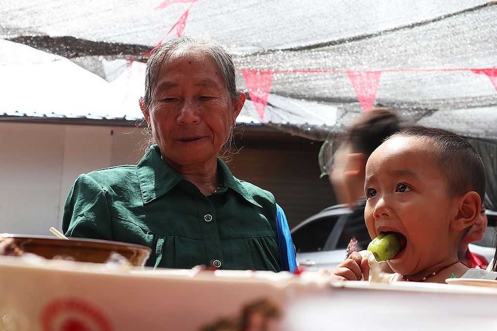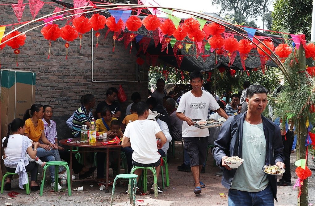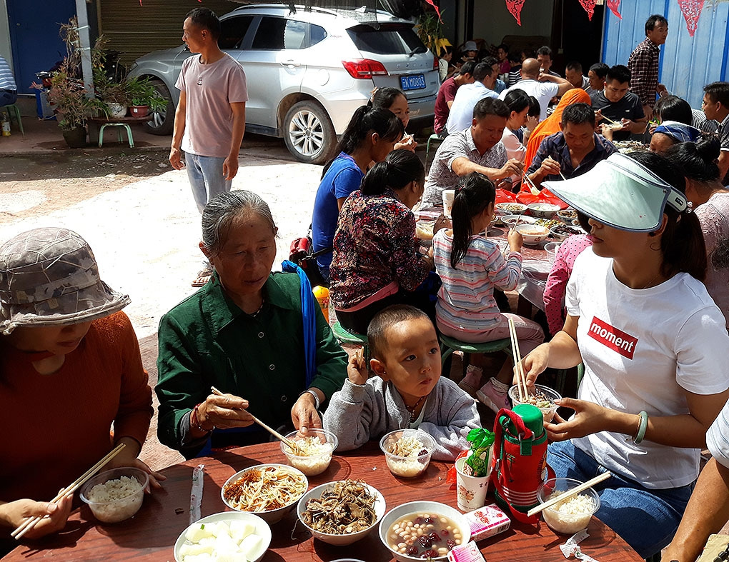 친척 결혼식이 이곳에서 있어 점심도 먹을 겸 해서 들렀다. 결혼식에 초대받고 참석하지 않으면 큰 실례라고 윈춘이 말해준다. 그래서 안주인까지 동행했나 보다. 지금은 중국의 최대 연휴인 국경절 기간이다. 땅덩어리 넓은 중국, 도시에 나가 있는 친척들이 이런 오지까지 오려면 며칠이 걸리기도 해서 긴 연휴기간에 결혼식을 많이 치른다.
