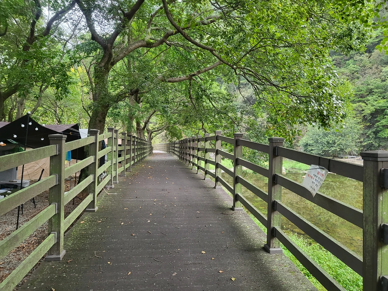 위로는 나무 그늘이 드리우고 앞에는 물놀이를 할 수 있는 하천이 흐르고 뒤편에는 황금빛 들판이 넓게 펼쳐져 있는, 자연 속에서 진정한 쉼을 누릴 수 있는 곳이었다.