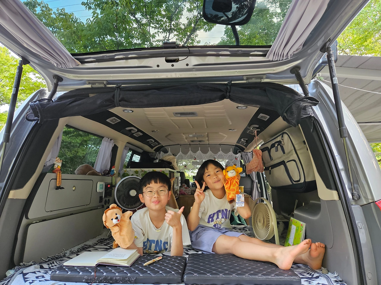 서브 텐트를 칠 필요 없이 차에서 잘 수 있고 냉장고와 전자레인지, TV까지 모두 싣고 다닐 수 있어서 더 편하게 주말마다 야외로 나가셨다.
