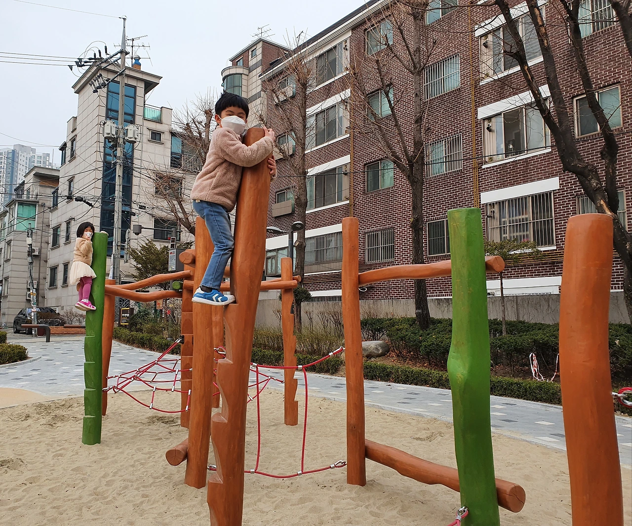 놀이터에서 즐거운 시간을 보내고 있는 아들