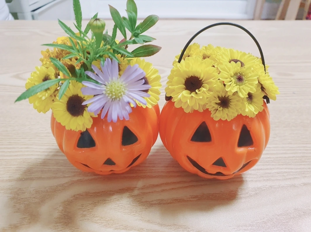 핼러윈을 앞둔 어느 날. 늘 그렇듯 꽃집 이모와 인사하며 지나가려는데 갑자기 이모가 우리를 부르셨다. "잠깐만 기다리세요~!" 하시며 작은 바구니를 가져오셨다. 늘 지나다니며 아이들이 인사해주는 것이 하루에 큰 기쁨이 된다며 고맙다고 하시며 귀여운 핼러윈 꽃바구니를 선물로 주셨다. 아이들은 싱글벙글. 그저 인사했을 뿐인데 이렇게 이쁜 선물을 주신 것에 감사했다.