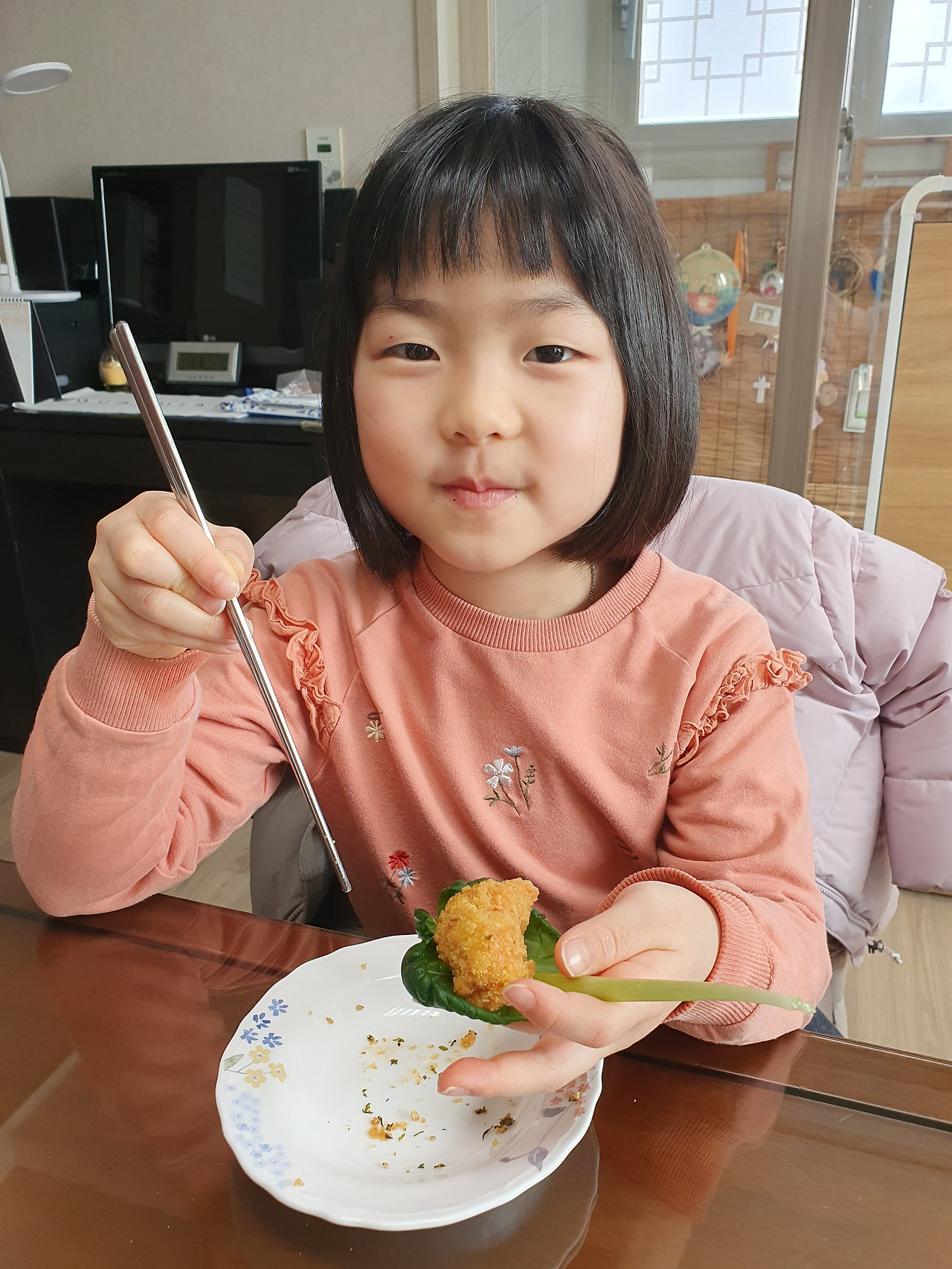 남편도 아이들도 따라서 치킨에 쌈을 싸먹기 시작했다.