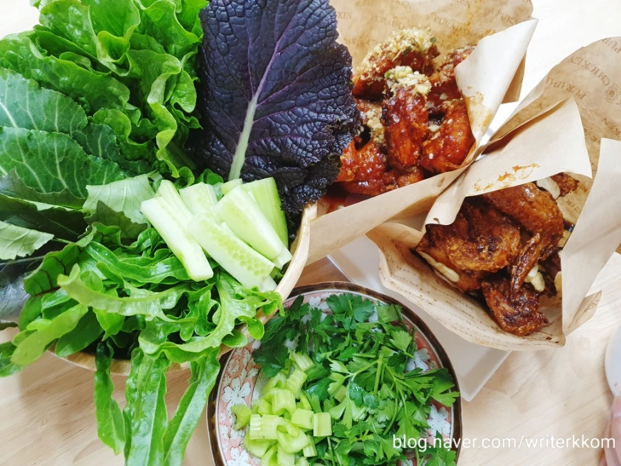 또한 쌈을 함께 먹으면 포만감도 좋아 싱싱하게 살아있는 날 것의 그것, 쌈야채로 치킨을 쌈싸먹으면 좋다는 이야기를 들었다.