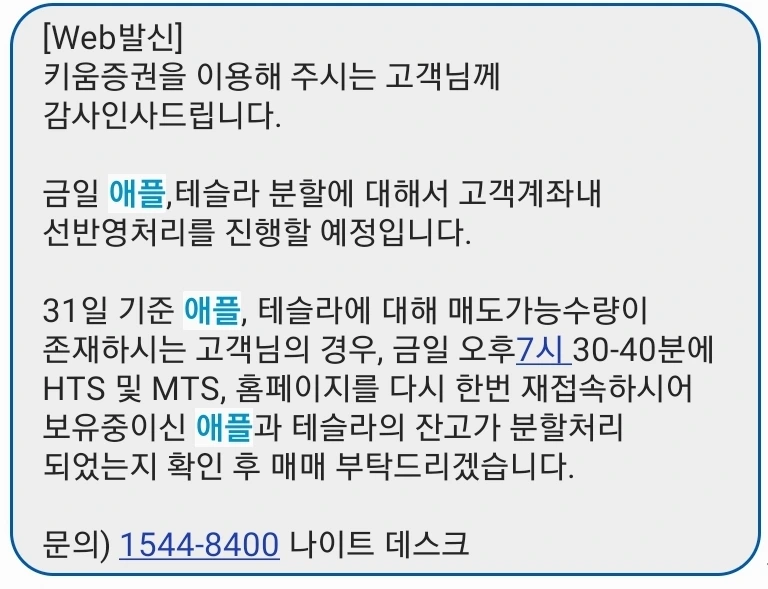 (아이들의 적금이 만기 되었을 때 애플과 테슬라 주식을 매수해 주었었어요.)