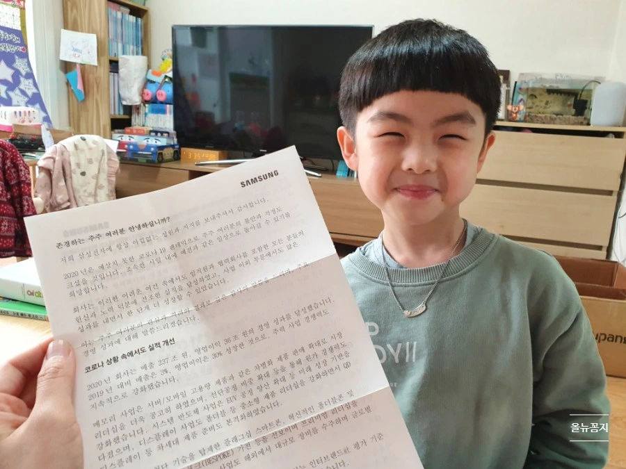"우리 집에 있는 TV랑 냉장고랑 만드는 회사에서. 삼성전자 말이야."