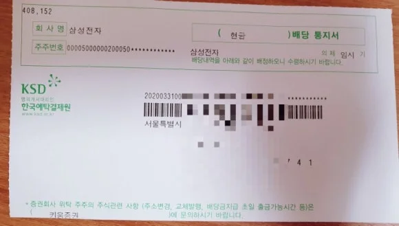 설날에 받은 용돈으로 삼성전자 주식을 샀었는데 배당금이라는 기쁜 소식을 전해준 것이었어요.