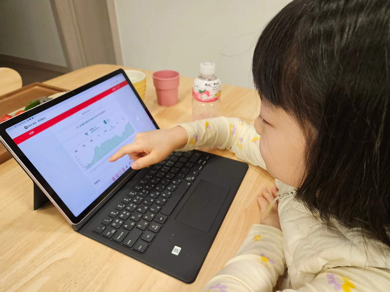 그러면 아이들이 "요즘 잘 되는 회사는 어디예요?" "요즘 떨어진 주식은 뭐예요?"라며 묻는데요 제 생각과 최근 기사 내용을 알려주고 어떤 주식을 선택할지 같이 이야기를 나누며 미래를 예측해보기도 해요.