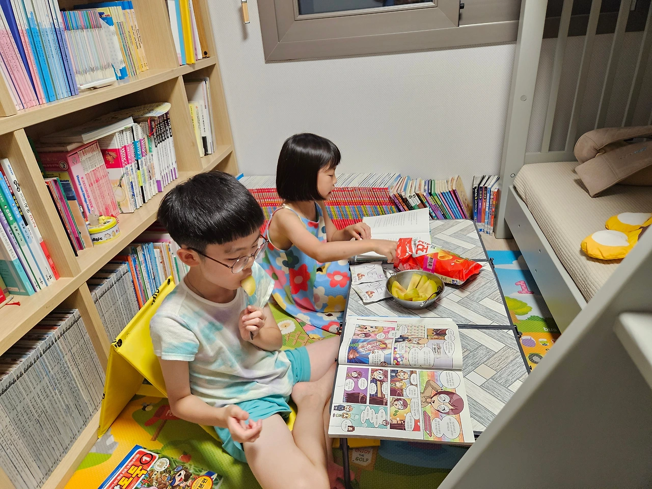 만화책과 줄글책의 균형을 잘 이룰 수 있게 옆에서 도와준다면 크게 문제되지 않고 오히려 책을 좋아하는 아이가 되지 않을까 하는 생각을 해요.