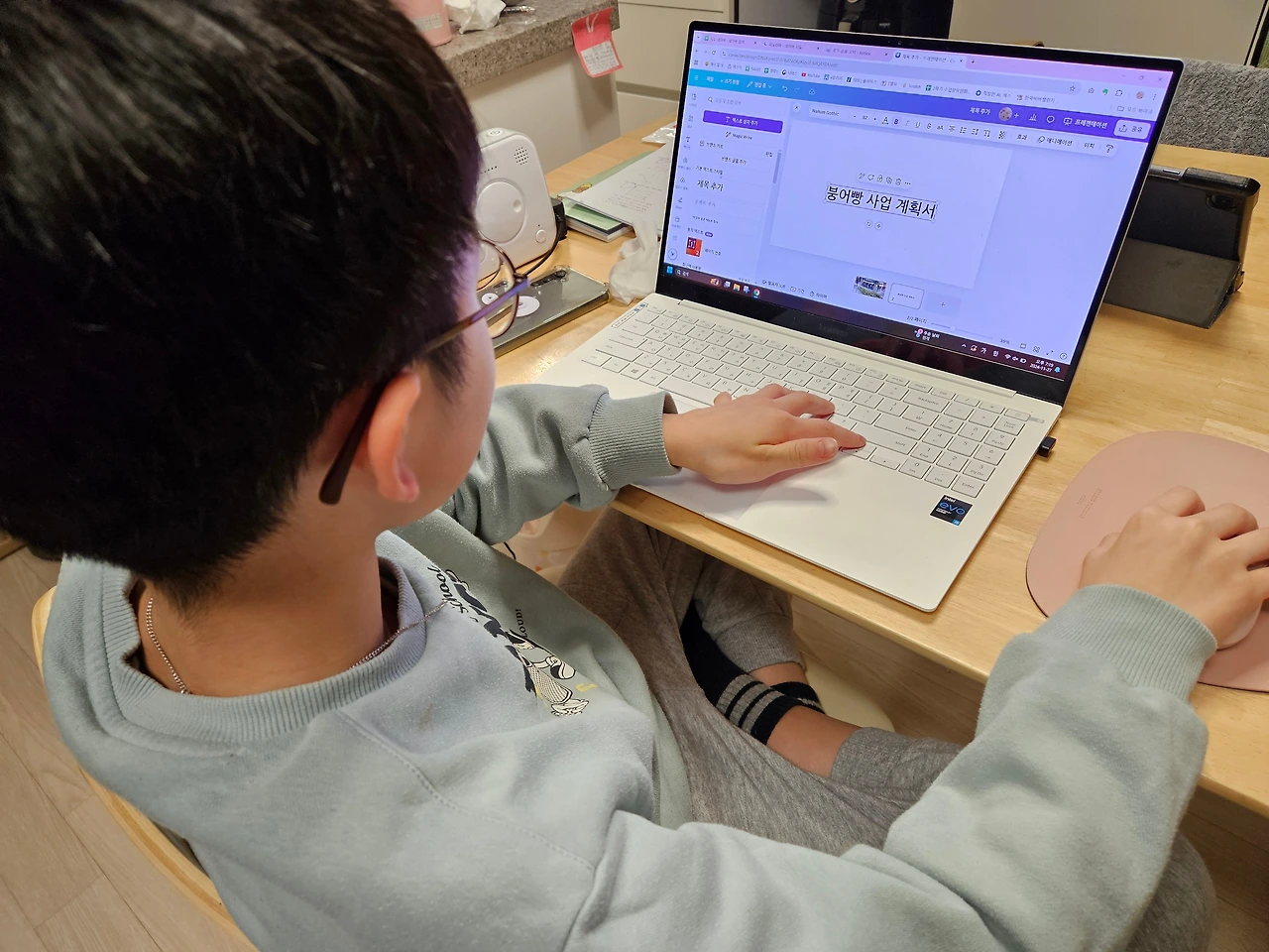 아들은 적극적으로 의견을 내면서 자료를 만들어 갔어요.