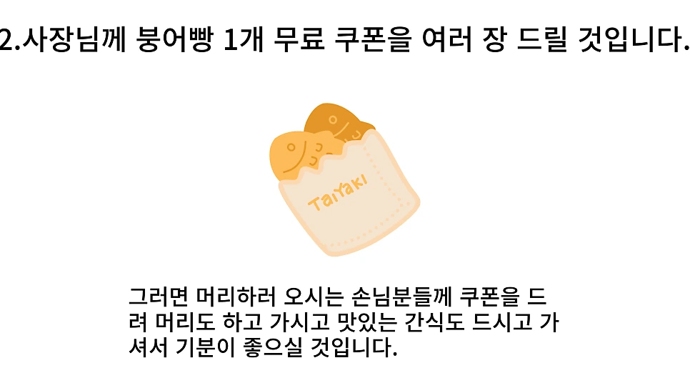 "미용실 손님께 붕어빵을 드리면 어때요? 기다리시면서 드시면 되잖아요."