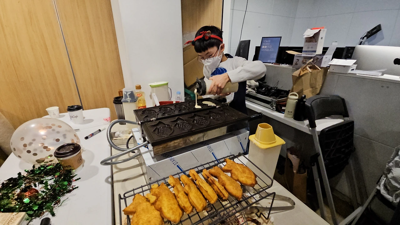 마침 매달 참여하는 봉사 활동이 생각났다는데요 이번에는 특별히 다른 봉사팀과 조인해 크리스마스 파티로 크게 진행하는데 이때 '붕어빵을 간식으로 구워서 나누면 어떨까?' 하는 생각이 들었어요.