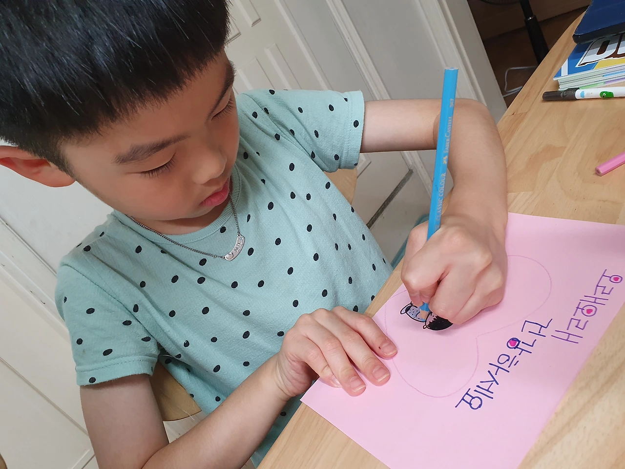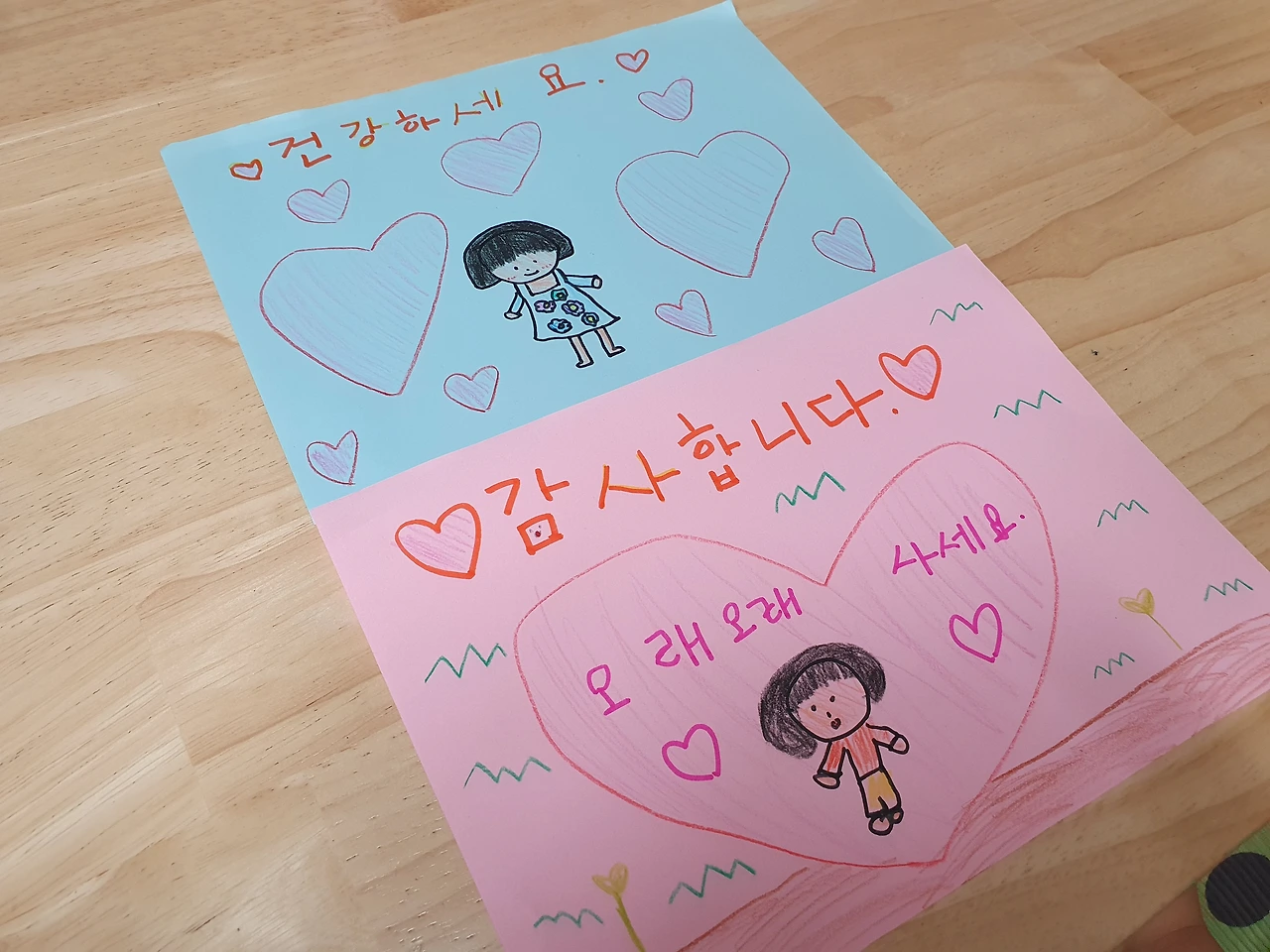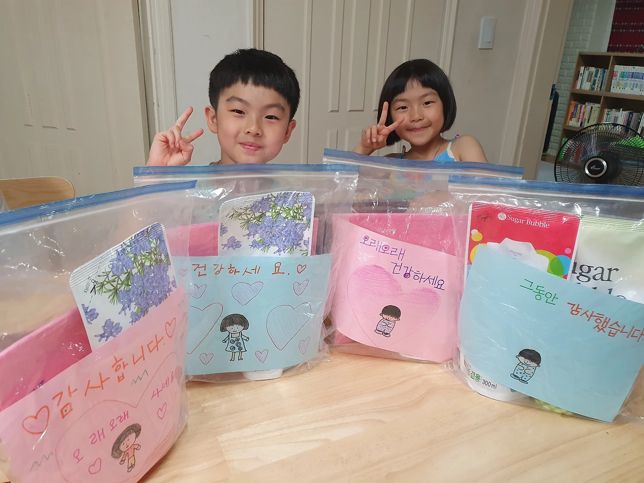떠나기 전 날, 아이들과 함께 이웃분들께 편지를 쓰고 조그만 선물을 나누었다.