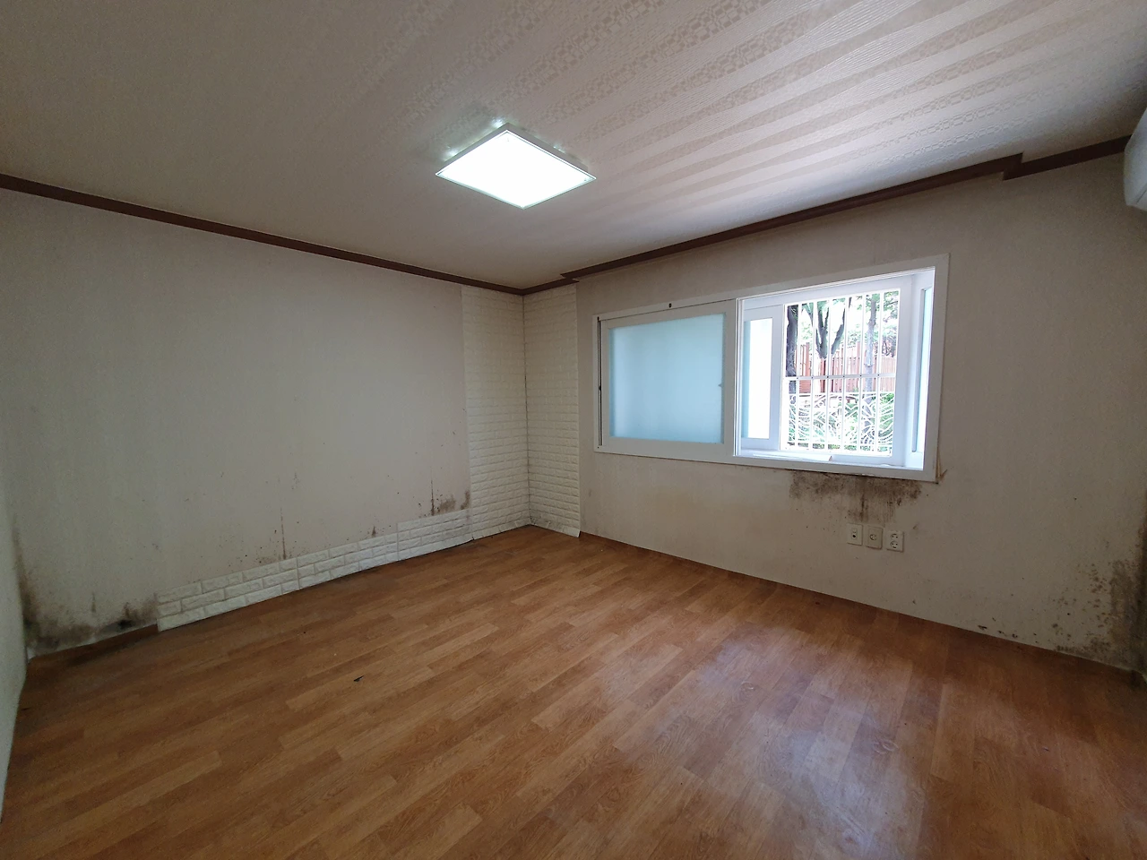 습기가 찼던 벽에는 곰팡이 자국이 남아있다.