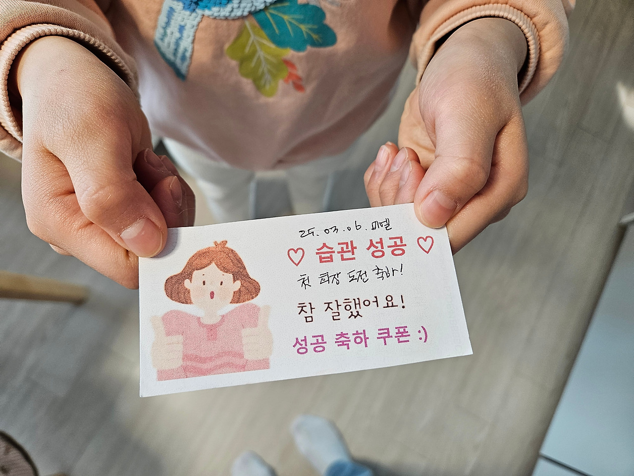 아이 스스로 무언가를 해냈을 때 성취감과 함께 보상을 느낄 수 있게 쿠폰을 발행했어요.