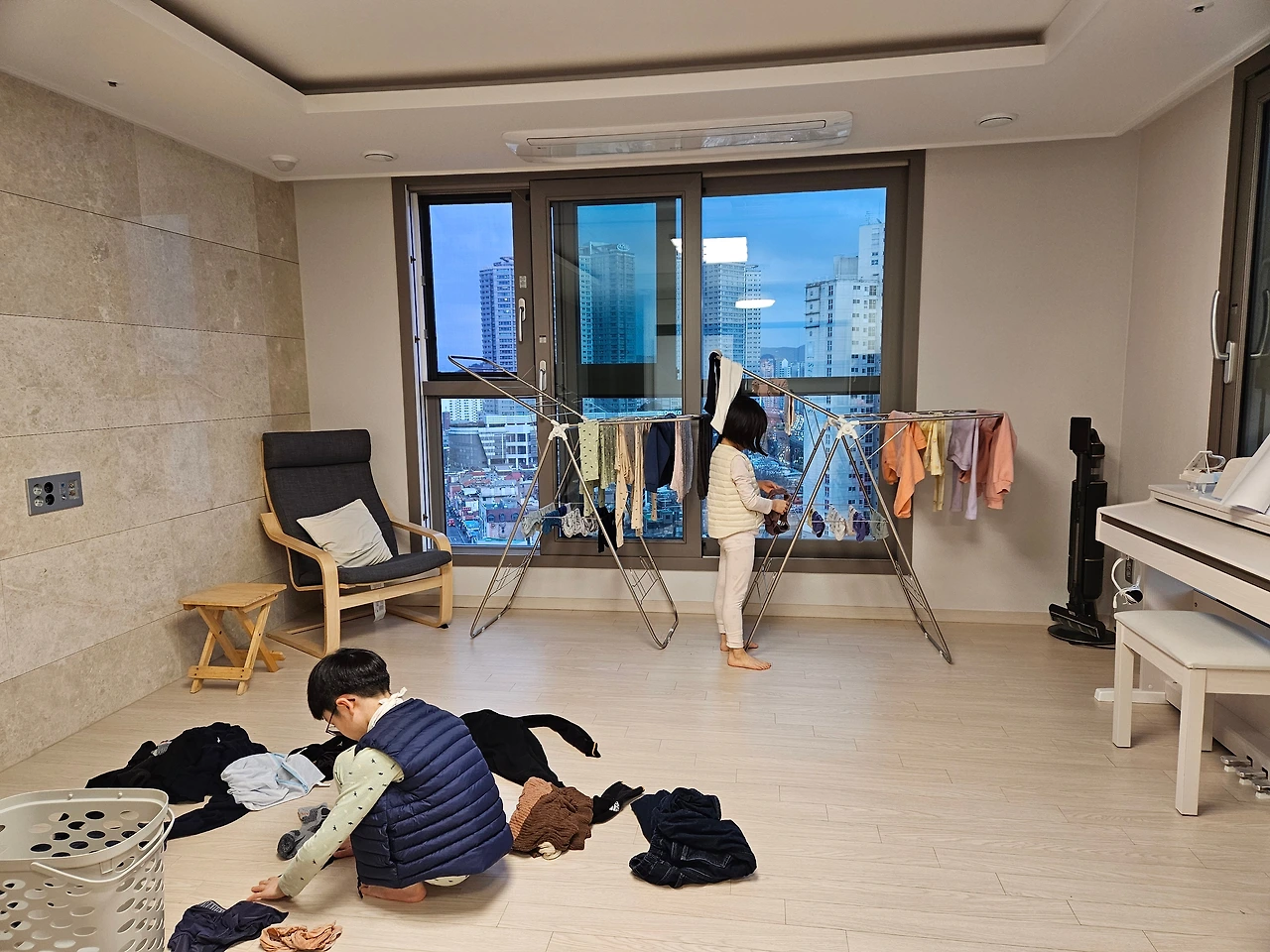 빨래를 돌리고 개어 정리하고 주기적으로 화분에 물을 주는 등