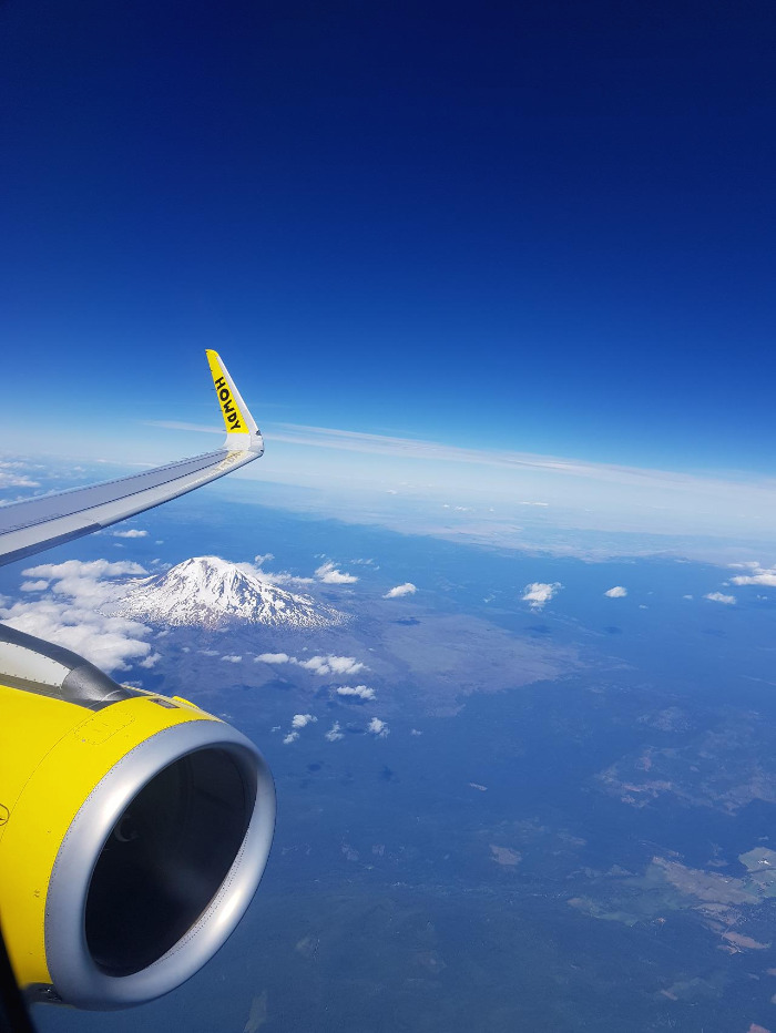 하늘에는 구름도 없어서, 올라가니 먼 미국 땅까지 다 보인다. 갑자기 큰 산도 보인다. 'Mt. Rainier'라는 멋진 산이다. 언제 가도 만년설로 뒤 덮힌 워싱턴주의 자랑이라고 한다. 조금씩 비행기가 더 날아가니, 황량한 사막도 보이기 시작하면서, 점점 라스베가스에 가까워 지는게 느껴진다.