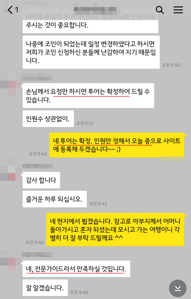 여행사 : 서운한 일이나 부족한 일 아니라고 생각 바람 (뭐?)