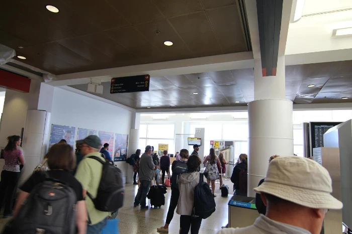 이번 순서는, 거칠고 와일드한 입국 검사대를 지나는 시간이다. 미국에서 비행기를 타는거니 얼마나 빡빡할지 이제는 사뭇 기대가 되기 시작한다. 길게 늘어진 줄을 돌고 돌면, 첫 번째로 쾌활한 아저씨들이 여권과 탑승권을 검사한다. 역시나, 미국 사람들은 과잉 친절과 과도한 붙임성은 타고 난 것 같다 (한국 사람 기준과잉이라 표현하자.)