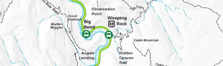 8번 Big Bend와 7번 Weeping Rock 사이에 있는 Trade Mark인 Angels Landing이다. 출처 = https://www.rockymtnrefl.com/