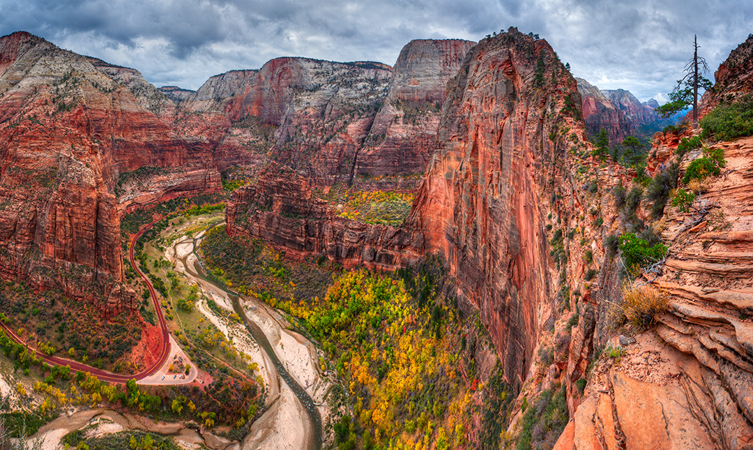 공원내 Virgin River의 지류가 오랜 기간 침식작용을 통해 수백미터의 협곡을 만들어 냄
