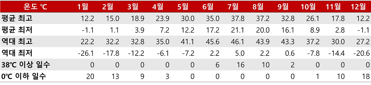 [ 월별 Zion국립공원 온도 및 기후 ]