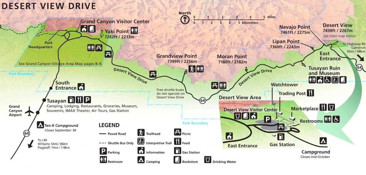 오늘 우리가 입장한 곳은 East Rim. 'Desert View Drive'라는 길을 따라가면 되는데 이 곳도 기대보다 멋진 곳이다. 숲이 우거져 있고 멋진 관광 포인트도 길 따라 많이 모여있다. 우선은, 길 따라 나있는 주요 Point를 하나씩 둘러보기로 한다.