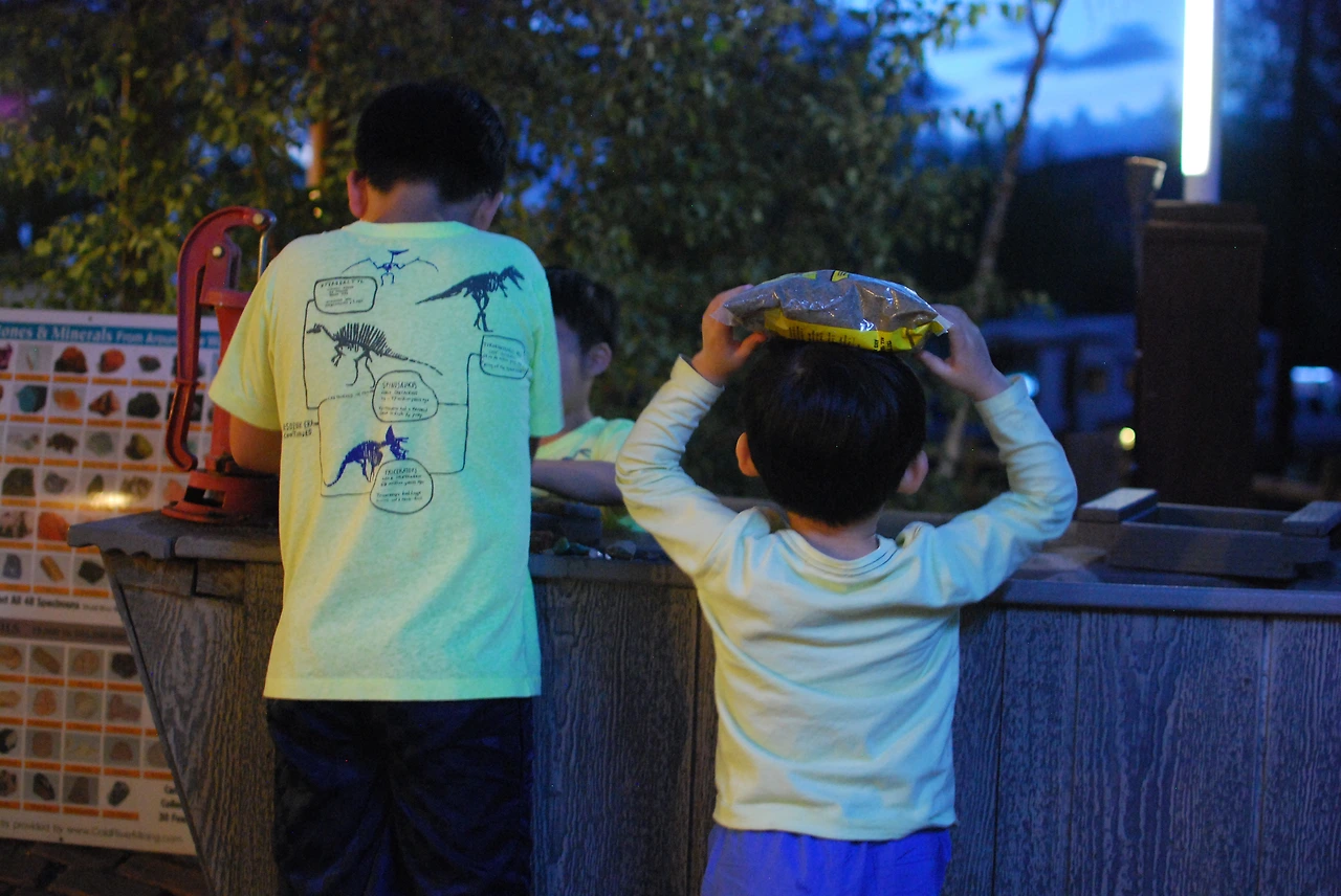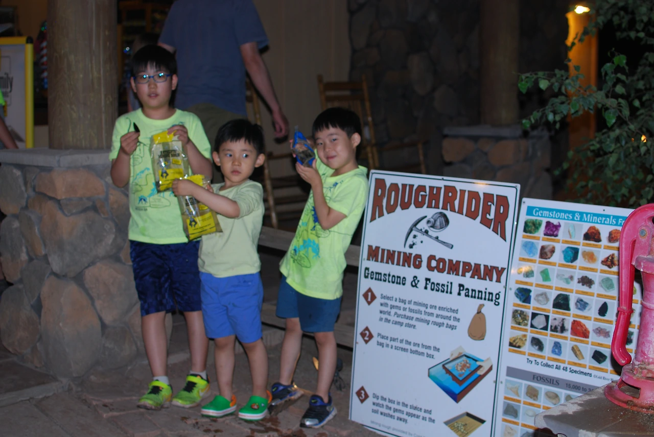 Rough Rider Mining Company라는 콘셉트(?)로 보석 찾기와 화석 찾기 같은 놀이가 있는데, Store에서 파는 1개의 봉지를 뜰채 같은 곳에 붓고, 채석장에서 보석과 화석을 찾는 놀이인데, 마침 화석에 빠져있는 아들 녀석에게는 즐거운 놀이였을 터, 한국에 와 있는 지금까지도 그때 캔 보석들을 방에 간직하고 있다.
