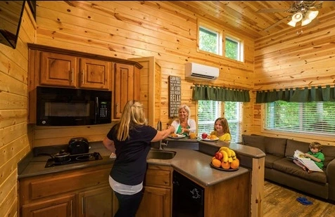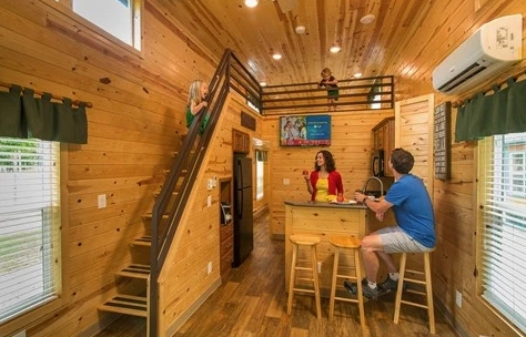 KOA는 기본적으로 시설을 공유하는 캠핑족과, 단독-독채 시설을 빌릴 수 있는 캠핑족이 함께 이용이 가능하다. 시설을 공유하는 파트는 작은 통나무 집에서 잠을 자도 되고, 차량용 캠핑, 텐트 등을 이용해도 된다. 대신 샤워장, 욕실 등은 함께 이용을 해야 하는 부분이 있지만, 독채 같은 경우 하나의 집을 만들어 두는 형태인데 화장실, 주방, 침대, TV, 냉장고 등이 모두 구비되어 있다.