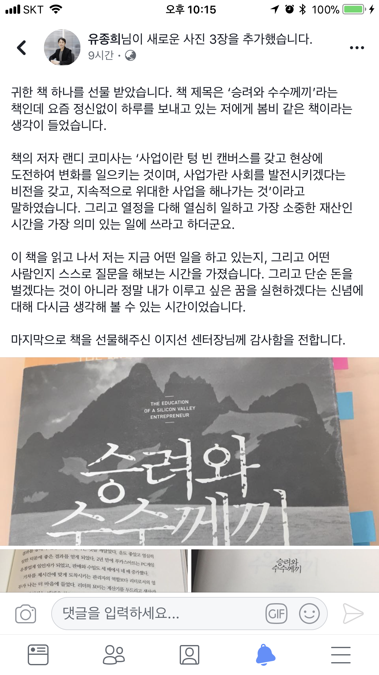 이 책을 읽고 '단순히 돈을 벌겠다는 것이 아니라 정말 내가 이루고 싶은 꿈을 실현하겠다'는 신념에 대해 다시 한번 생각하게 되었다고 후기를 전했다.