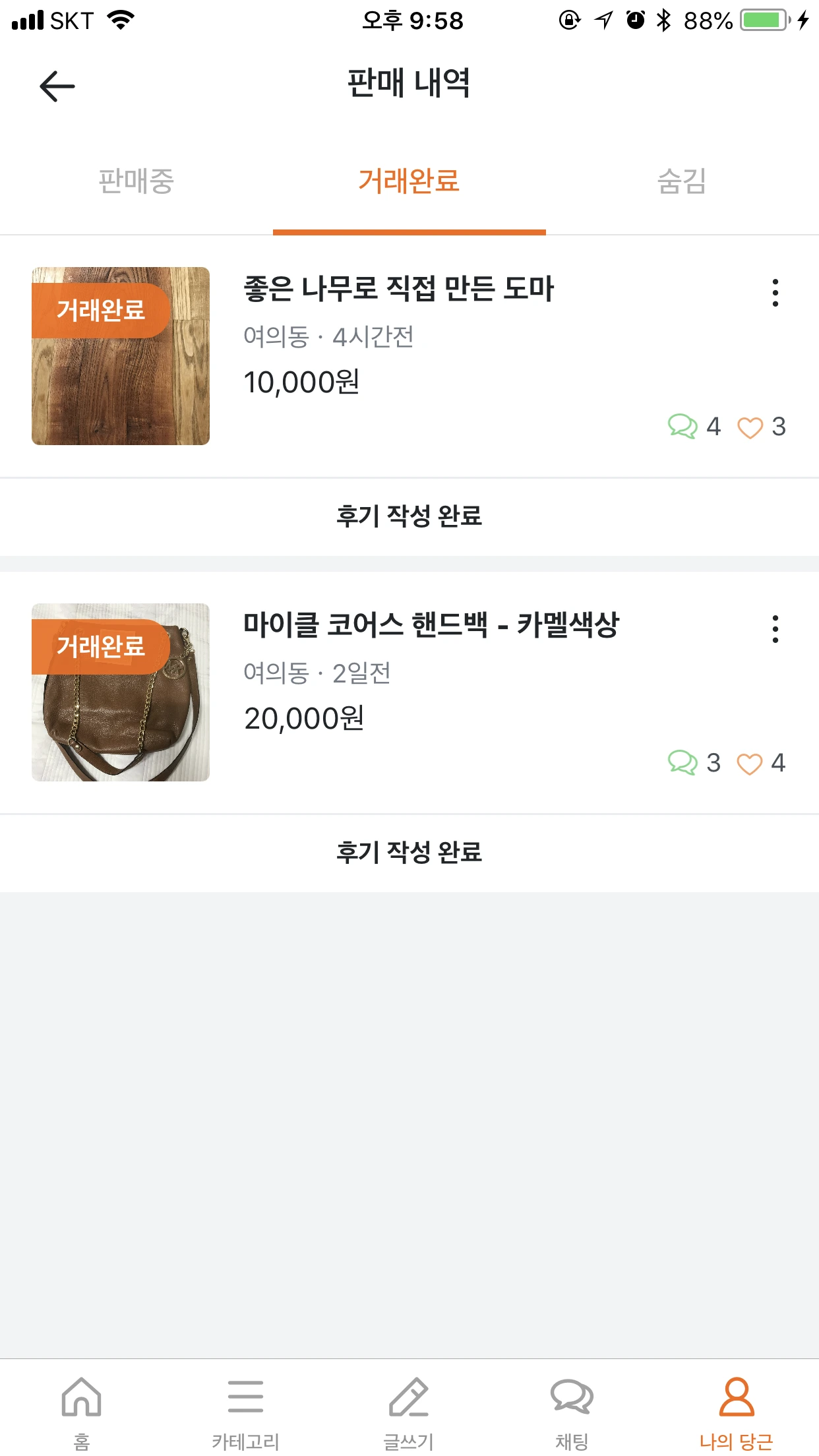 그러다가 요즘엔 가능하면 스타트업의 제품을 사보고, 서비스를 사용해보자는 쪽으로 생각이 미치어 두리번거리다 당근마켓 앱을 다운로드하게 됐다. 앱을 깔고도 여러 날을 두리번거렸다. 사실 마켓에 올라온 상품들은 별로 눈에 들어오는 것이 없었다. 동네 특성인 건지 내가 검색을 잘 못해서인지 내 주변의 매물들은 대체로 옷이나 신발과 같은 것이었는데 딱히 사이즈와 취향이 맞는 것이 없었다.