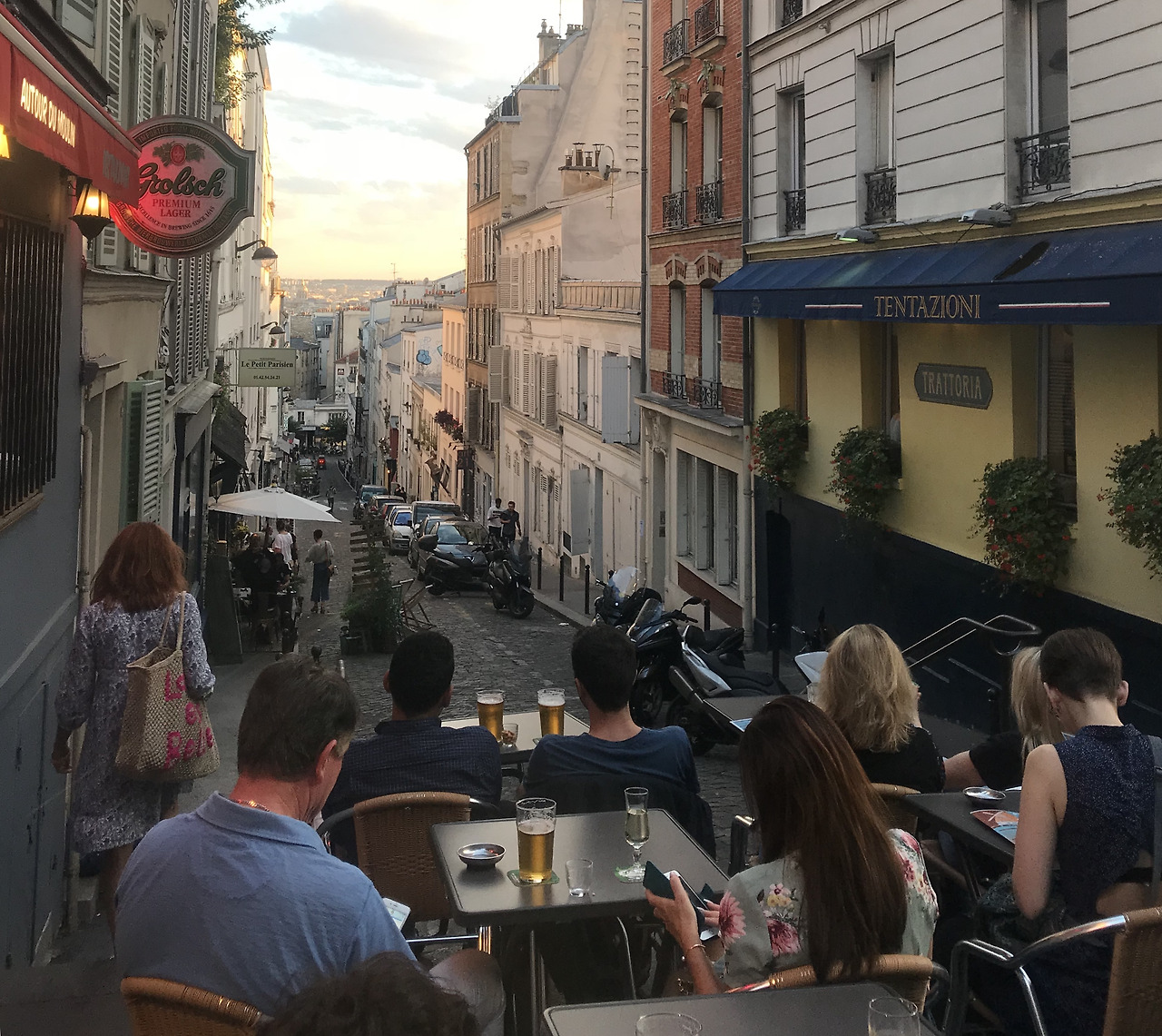 길거리 의자에 앉아서 와인과 커피를 마시고 식사를 즐긴다. 기울어진 언덕도 상관없다. 바로 옆으로 사람들이 자나가거나 심지어 차가 부딪칠 듯 지나가도 자신들의 테이블에 집중한다. 상황은 분명 어수선한데 신기하게 충돌없이 질서가 잡힌다.